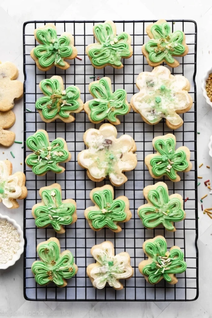 Keywords: St. Patrick's Day Cookies, Shamrock Sugar Cookies, Vanilla Bean Cookies, Soft Sugar Cookies, Festive Dessert, Vanilla Bean Buttercream, Shamrock Shapes, Holiday Baking, Irish Celebration, Cut Out Cookies, Green Desserts, Easy Decorated Cookies